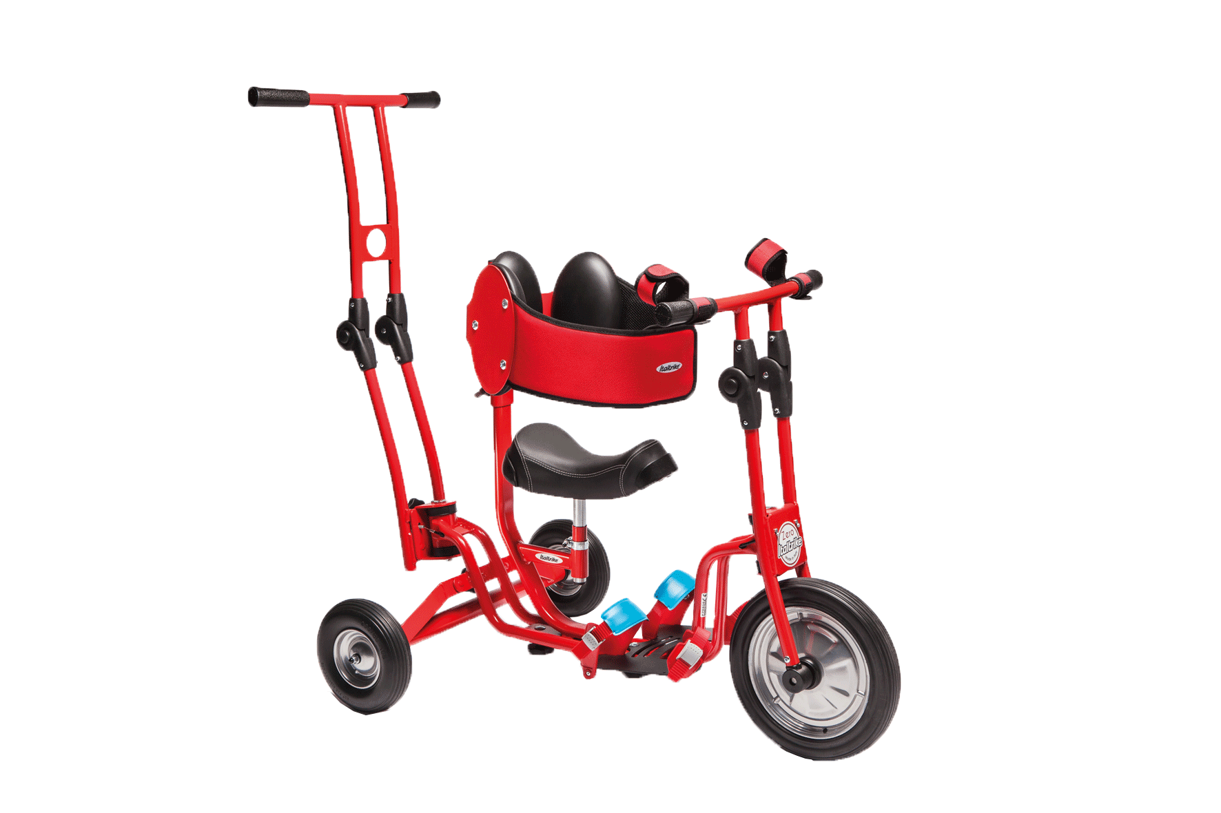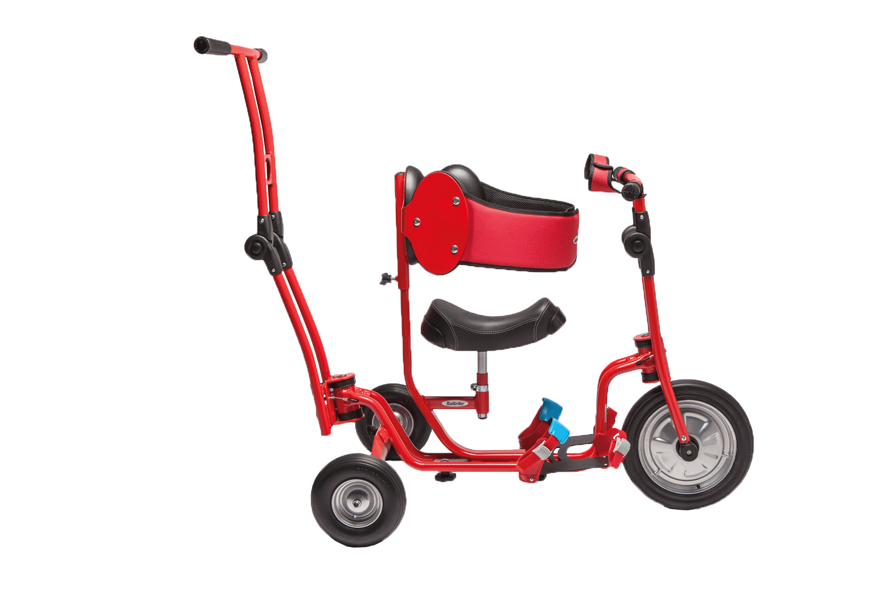 Sicher, dank seiner Sicherheitsgurte, justierbaren Bananensitz, gepolsterte Unterstützung für die Torsohaltung. Mit Standpedale für die Füße und justierbarem Lenker ist dieses Dreirad auch für Kinder mit körperlichen Beeinträchtigungen geeignet.
